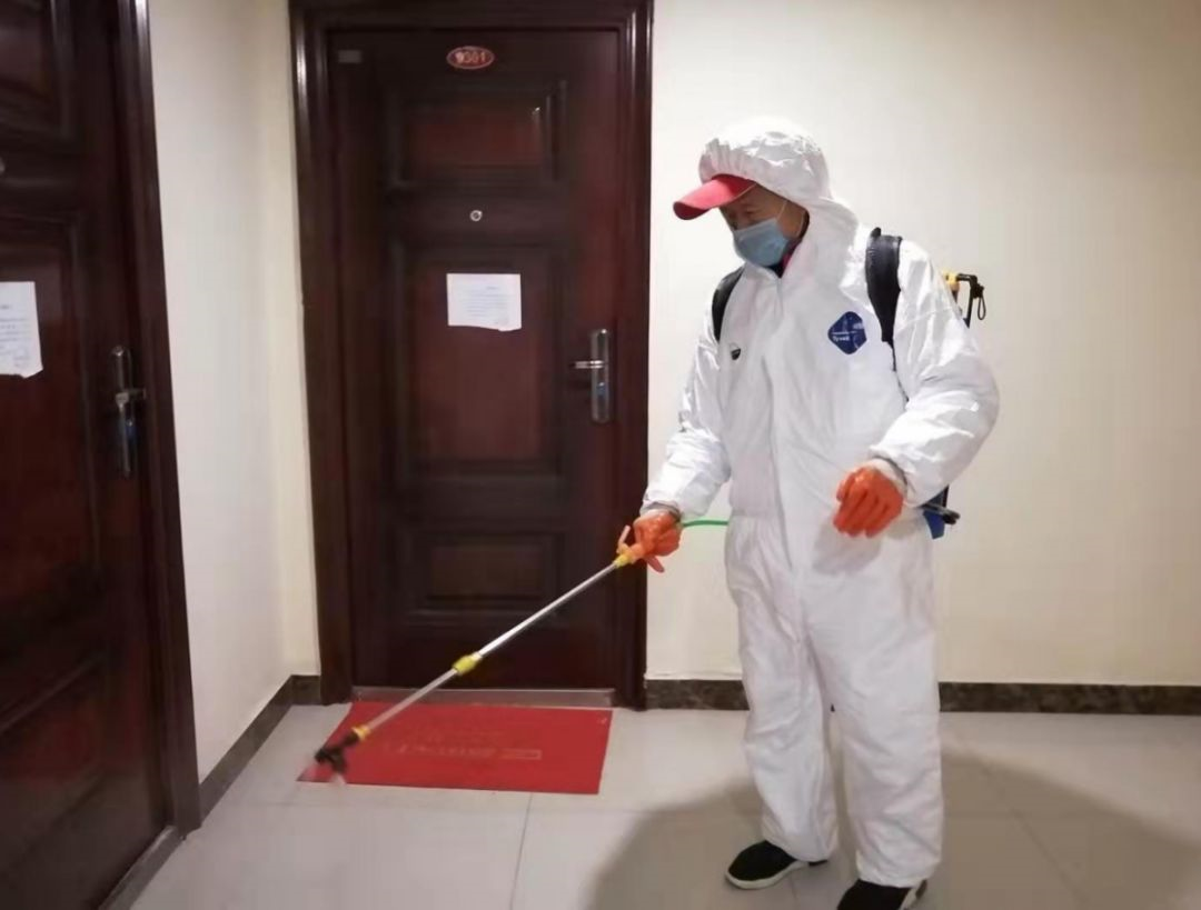 每天定時對在管小區的公共區域組織重點消毒,對重點部位加大清潔力度和消殺頻次。