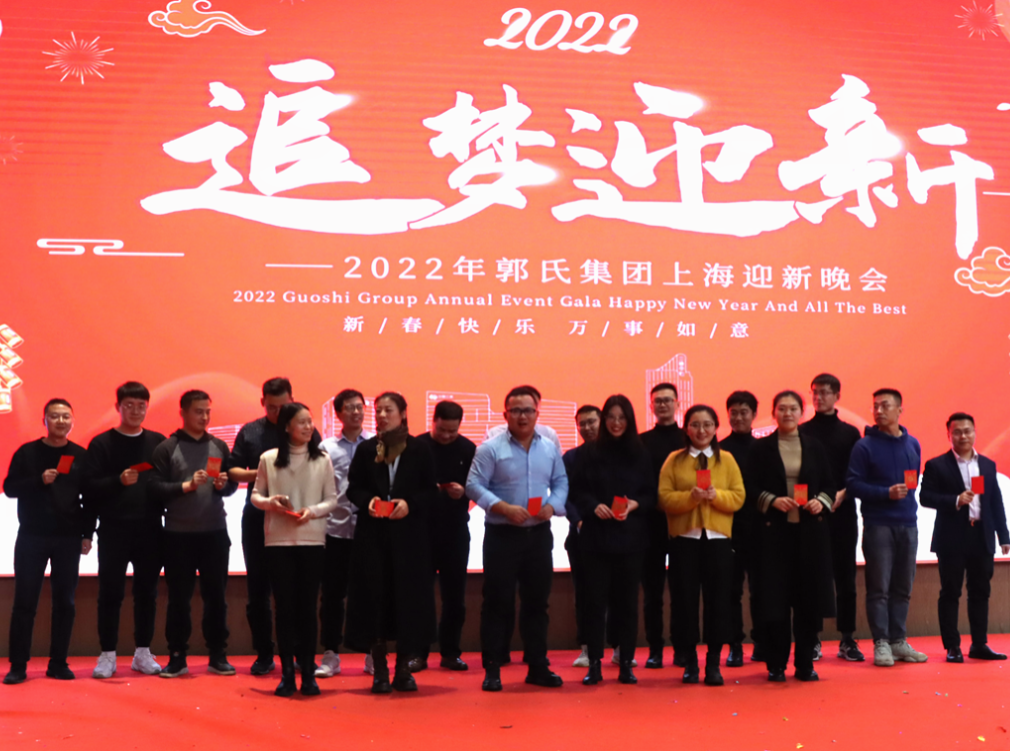 當天晚上,郭氏集團以“追夢迎新”為主題的迎春年會于上海三迪凱悅酒店圓滿舉辦。郭氏集團上海總部同仁歡聚一堂,暢想未來發展,同時為現場的幸運觀眾進行頒獎。