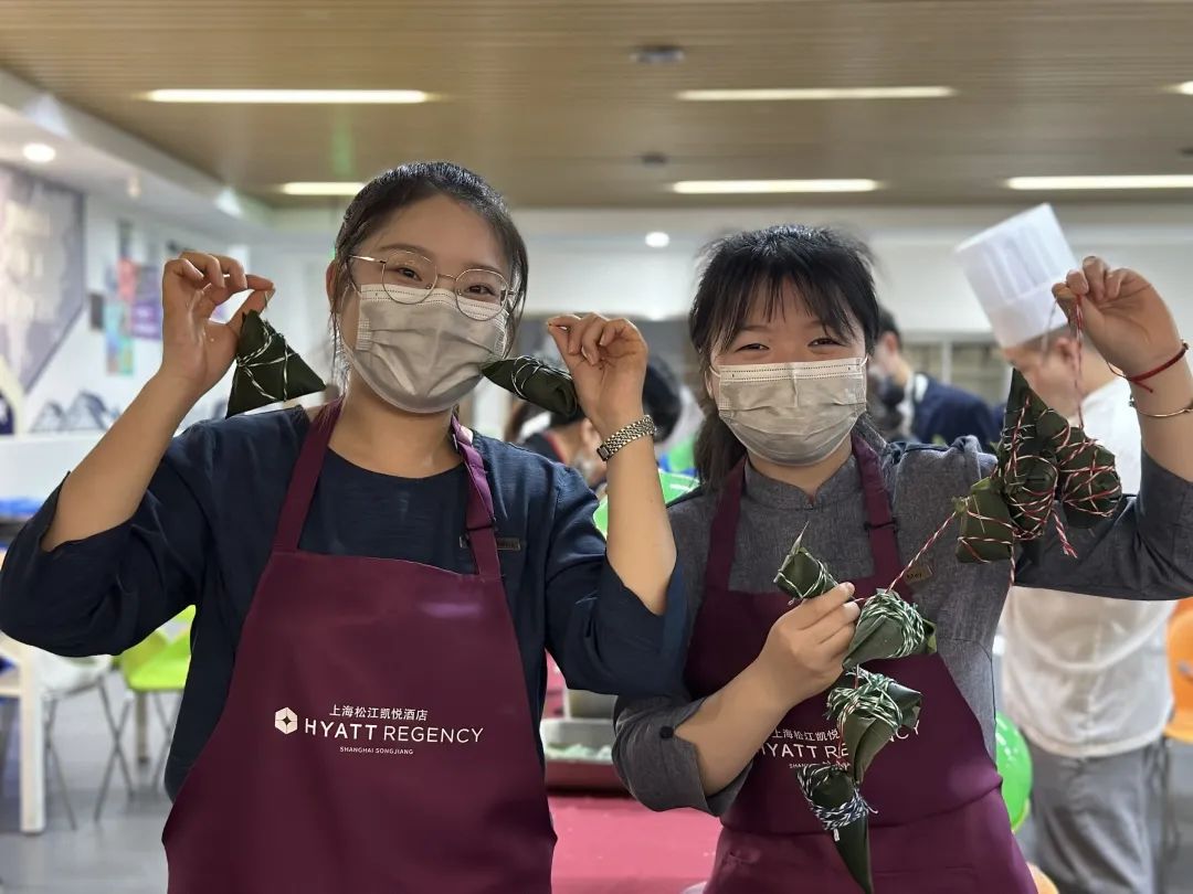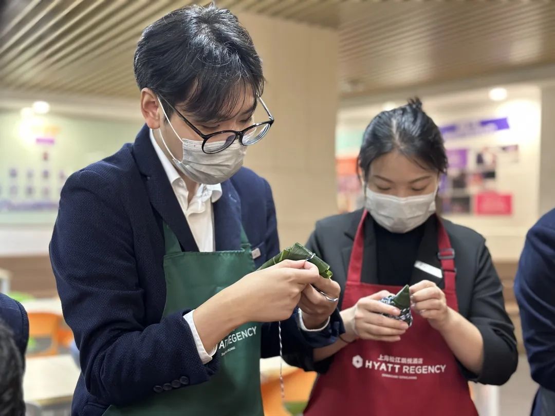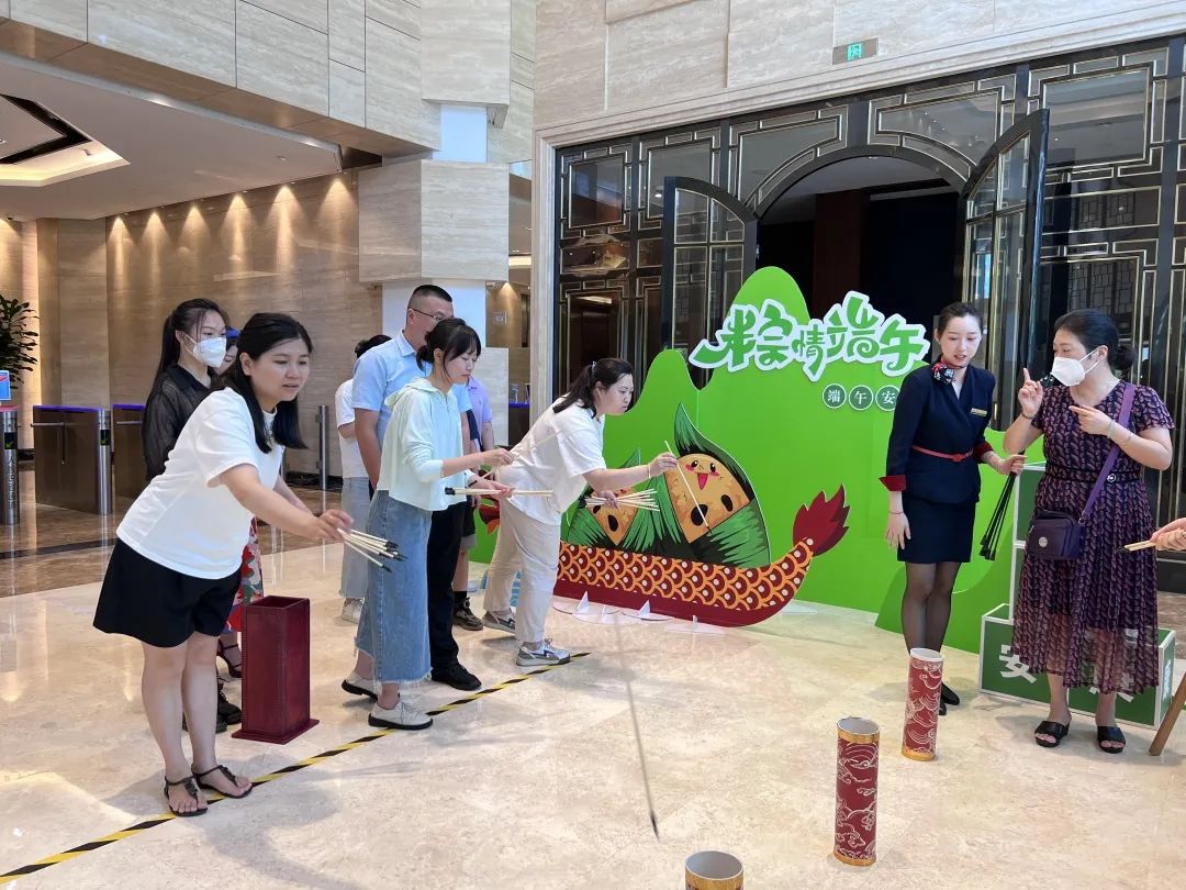 在持續三天的小長假中,酒店前場還組織了達人手工課 “慶端午包粽子” 的活動。片片棕香,屢屢恩情得以施展,客人在廚師的帶領下一同學習如何包粽子,并親手制作粽子。這樣的活動不僅增加了員工和客人之間的互動,還增進彼此之間的了解和交流。