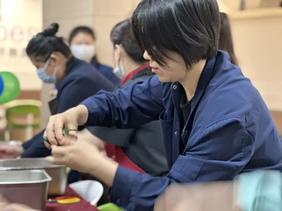 在酒店后場,員工包粽子的活動也如火如荼的進行中,傳統節日活動已經成為塑造企業文化的一部分。上海三迪凱悅酒店在此類活動中形成的一系列價值觀、行為規范、工作方式和組織氛圍等方面的特點和特征。