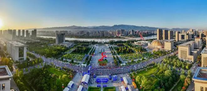 寶雞馬拉松開跑,背景是三迪世紀新城項目