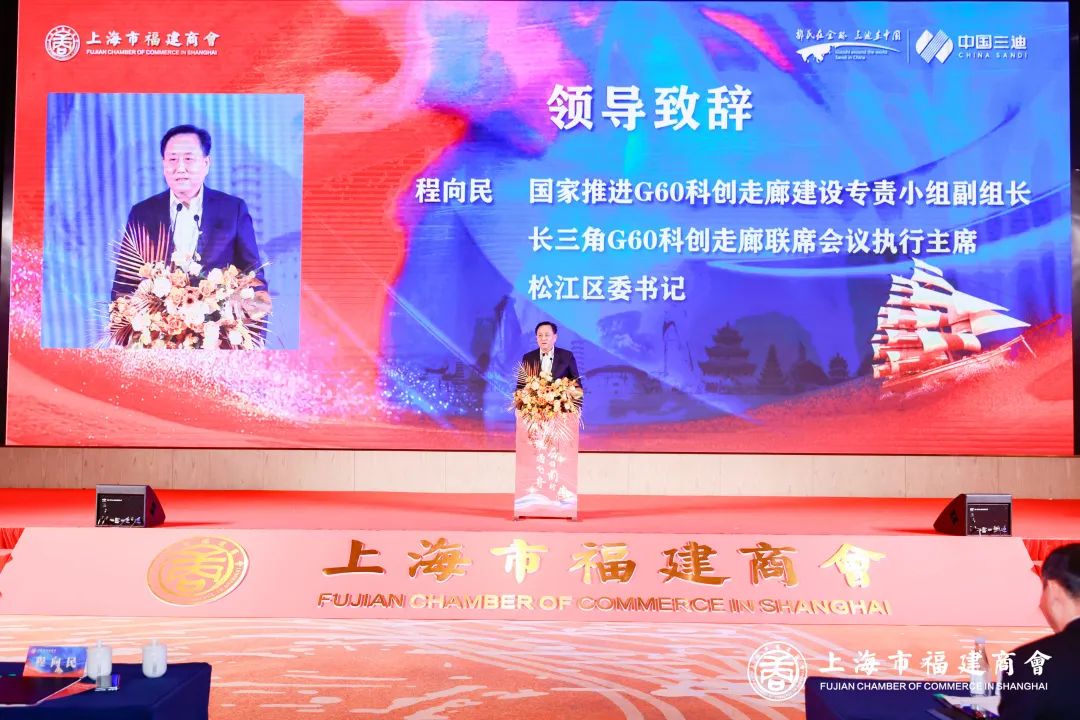 國家推進G60科創(chuàng)走廊建設專責小組副組長、長三角G60科創(chuàng)走廊聯(lián)席會議執(zhí)行主席、松江區(qū)委書記 程向民在致辭中,高度肯定了以郭氏、三迪為代表的閩商為松江的經(jīng)濟發(fā)展做出了卓越的貢獻。