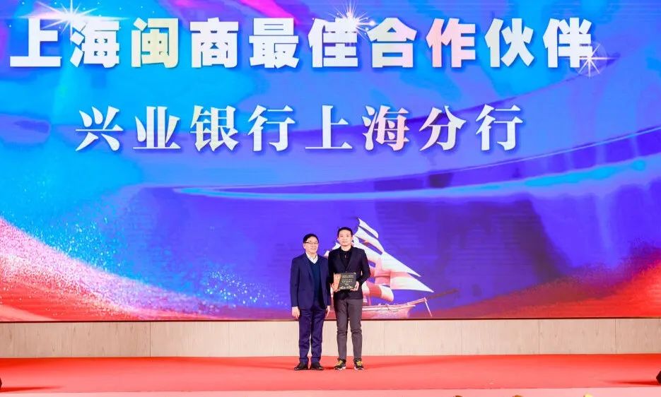 上海市福建商會名譽會長呂明向興業(yè)銀行上海分行頒發(fā)最佳事業(yè)合作伙伴獎。