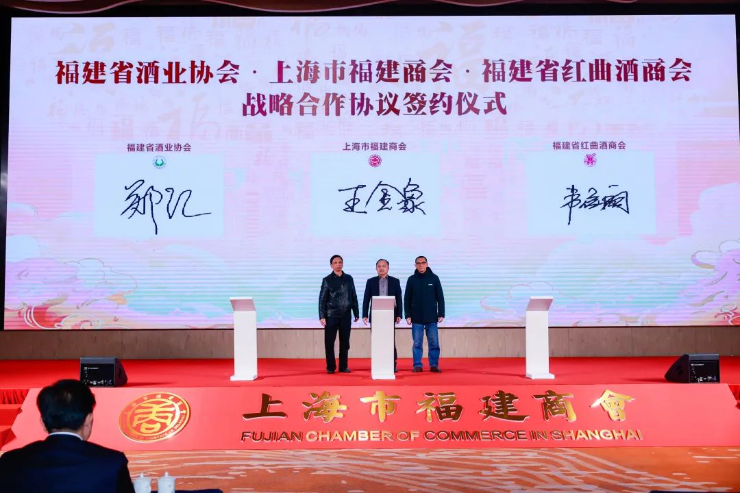 上海市福建商會名譽會長王金象代表上海市福建商會與福建省酒業(yè)協(xié)會、福建省紅曲酒商會戰(zhàn)略合作協(xié)議簽約儀式。